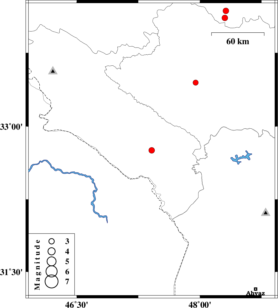 | 2015/09/06 | 10:58:14.2 | 15:28:14.2 | 32.755 | 47.413 | 18 | ML:3.2 | Ilam Province, 16 km -East of Dehloran | ||