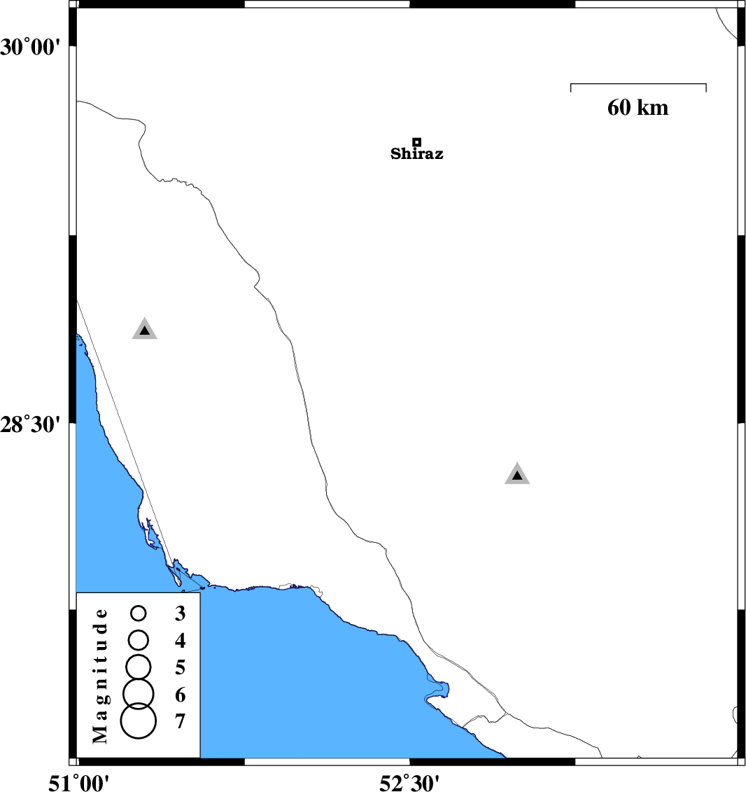 | 2015/09/07 | 05:29:26.5 | 09:59:26.5 | 28.65 | 52.487 | 18 | ML:3.6 | Fars Province, 22 km South-West of Firuz Abad |