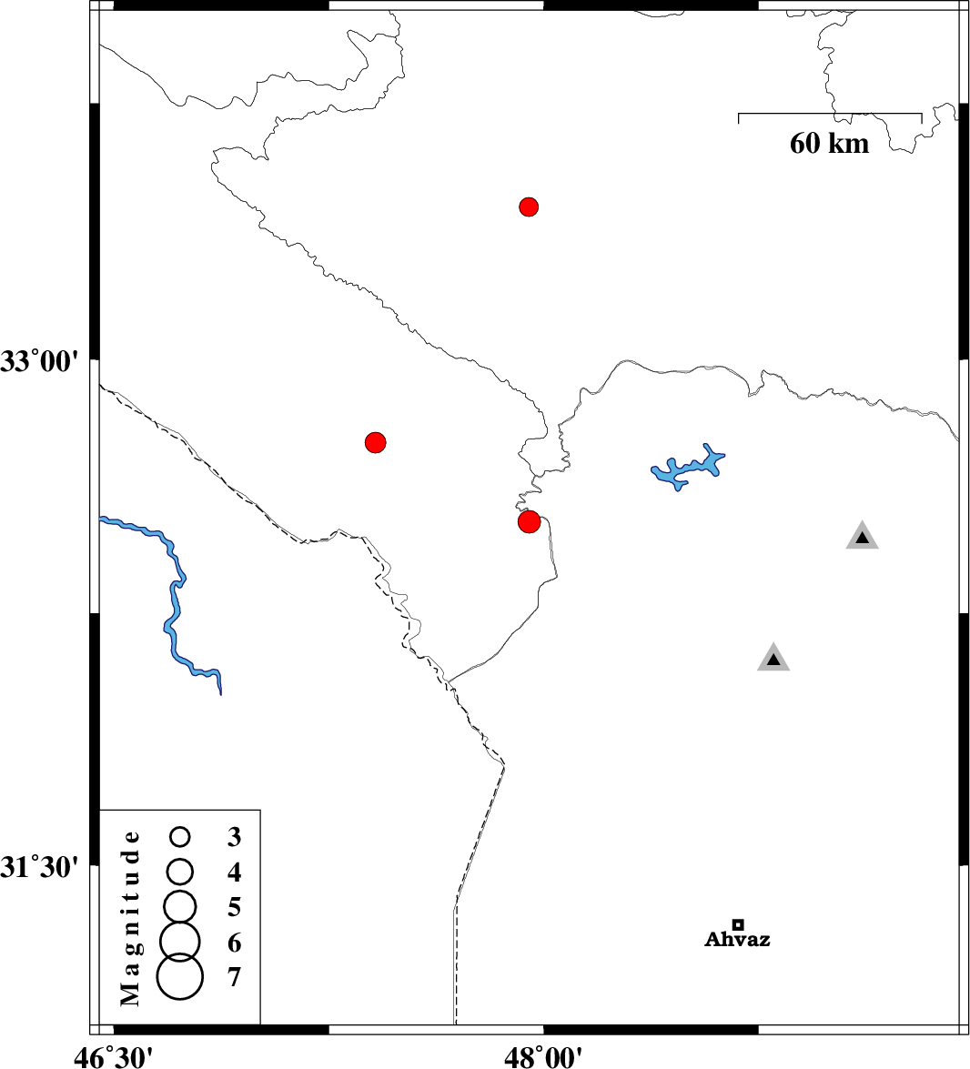 | 2015/09/07 | 19:49:18.1 | 00:19:18.1 | 32.521 | 47.949 | 18 | ML:3.5 | Khoozestan Province, 38 km -West of Andimeshk | ||