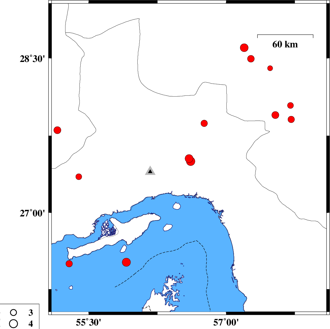 Persian Gulf, 44 km -East of Bandar-e lengeh | |