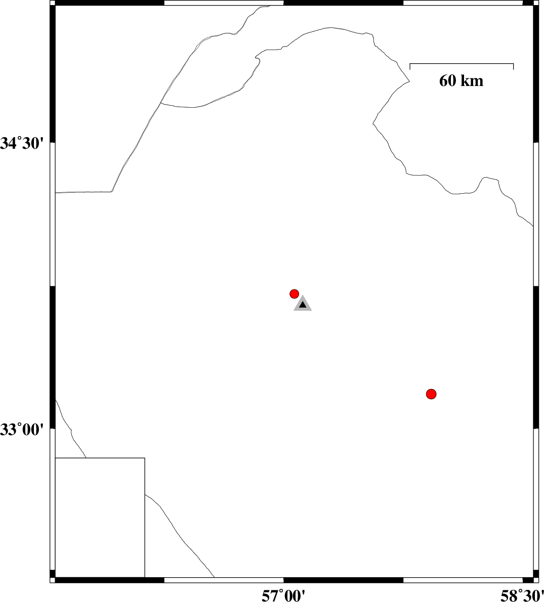 | 2015/09/10 | 23:18:38.8 | 03:48:38.8 | 33.709 | 57.066 | 14 | ML:2.5 | Yazd Province, 18 km North-East of Tabas | ||