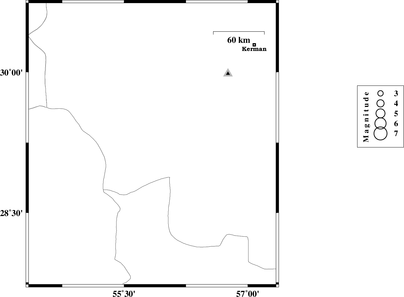 | 2015/09/09 | 09:38:09.8 | 14:08:09.8 | 29.116 | 55.534 | 14 | ML:2.5 | Kerman Province, 39 km South-West of Sirjan | ||