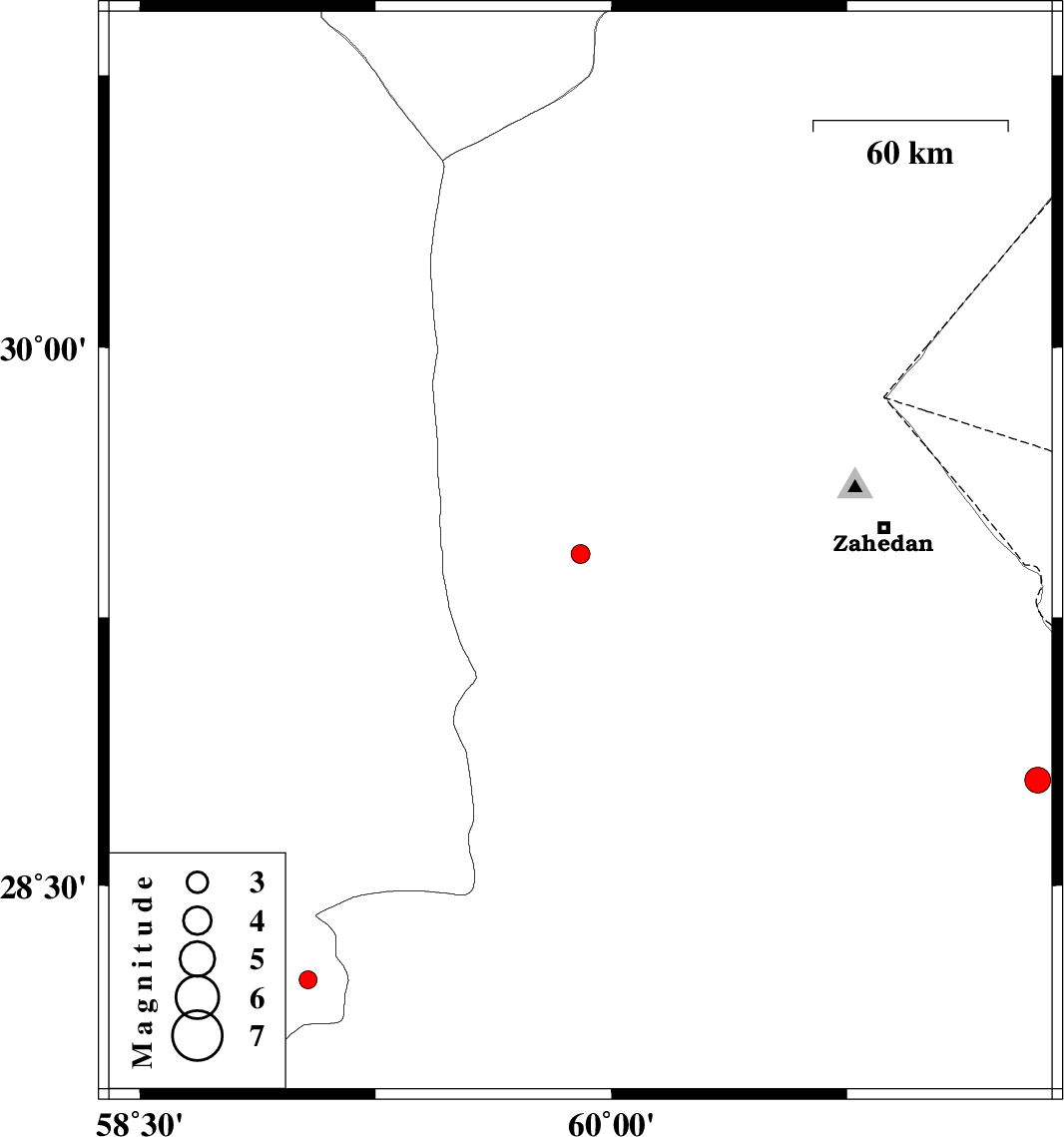 | 2015/09/13 | 18:32:51.5 | 23:02:51.5 | 29.427 | 59.902 | 18 | ML:2.7 | Sistan va Baloochestan Province, 94 km -West of Zahedan | ||