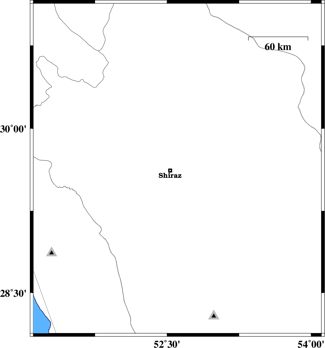 | 2015/09/16 | 02:39:19.2 | 07:09:19.2 | 29.628 | 52.607 | 18 | ML:3.3 | Fars Province, 7 km of Shiraz |