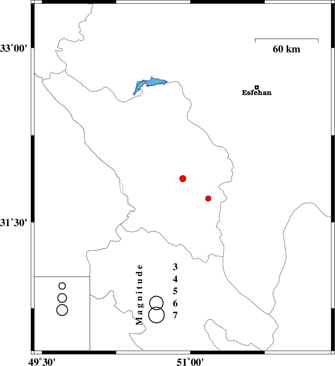 | 2015/09/17 | 01:27:13.7 | 05:57:13.7 | 31.705 | 51.18 | 15 | ML:2.5 | Chaharmahal Bakhtiari Province, 31 km South-West of Borujen | ||