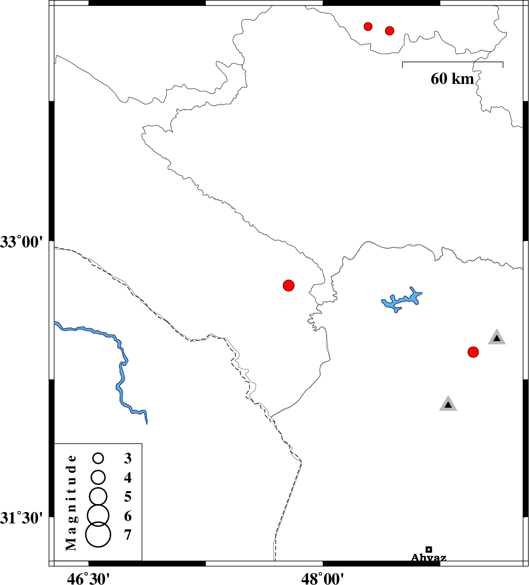 | 2015/09/14 | 23:38:13.8 | 04:08:13.8 | 32.399 | 48.962 | 37 | ML:3.1 | Khoozestan Province, 14 km -West of Lali | ||