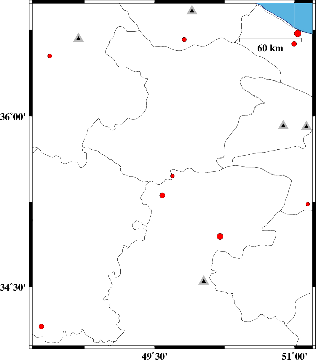 | 2015/09/14 | 09:36:53.4 | 14:06:53.4 | 35.477 | 49.691 | 17 | ML:1.9 | Ghazvin Province, 65 km South of Takestan | ||