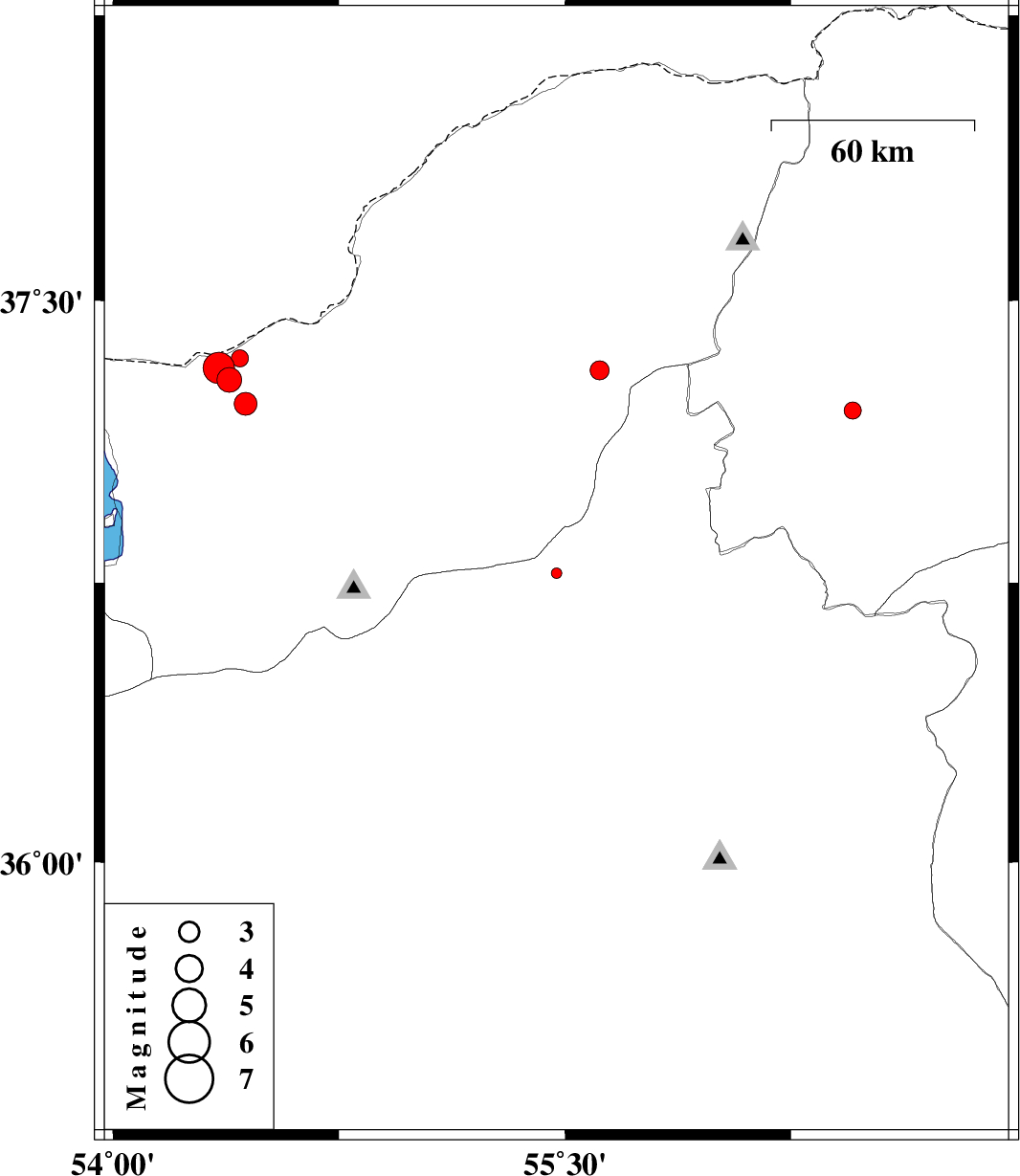 | 2015/09/18 | 15:56:21.6 | 20:26:21.6 | 37.29 | 54.386 | 18 | ML:3.6 | Golestan Province, 31 km North of Aq Qaleh | ||