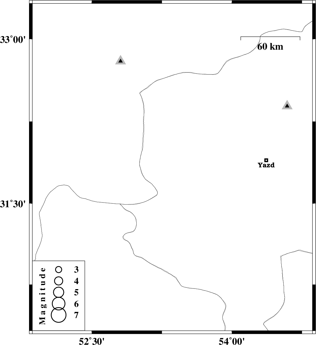 | 2015/09/17 | 07:51:00.5 | 12:21:00.5 | 31.821 | 53.363 | 14 | ML:1.6 | Yazd Province, 78 km North of Abarkuh |
