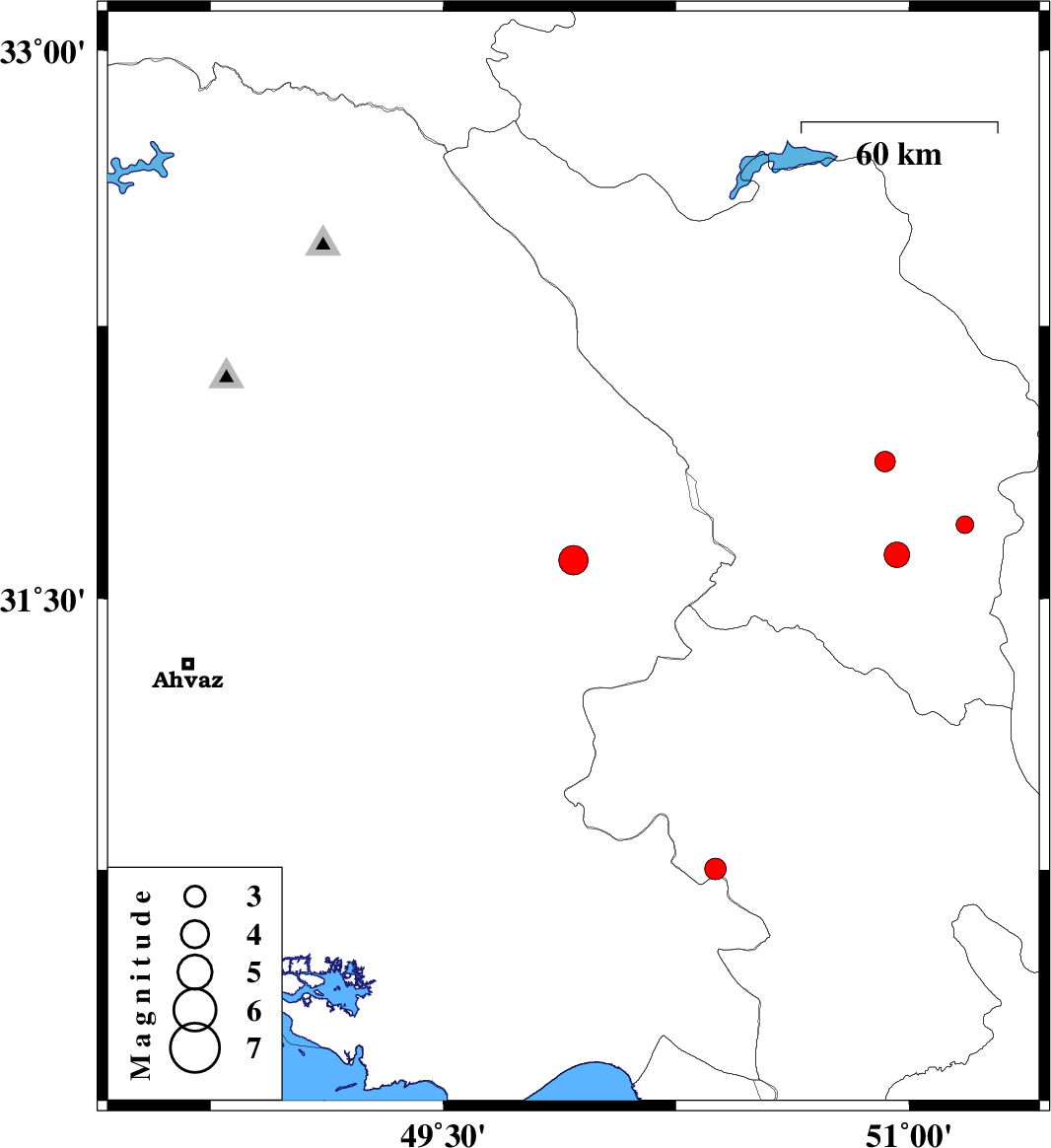 | 2015/09/23 | 08:45:20.9 | 12:15:20.9 | 31.607 | 49.919 | 17 | ML:4.2 | Khoozestan Province, 10 km of Bagh Malek | ||