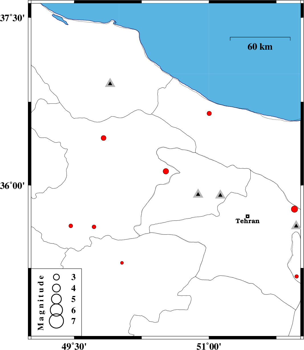 | 2015/09/21 | 09:00:50.3 | 13:30:50.3 | 35.784 | 51.952 | 15 | ML:3.2 | Tehran Province, 13 km -West of Damavand | ||