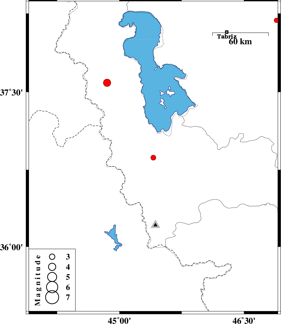 2015/09/01 | 02:33:21.3 | 07:03:21.3 | 37.589 | 44.851 | 14 | ML:4.1 | Azarbaijan Gharbi Province, 19 km -West of Orumiyeh | ||