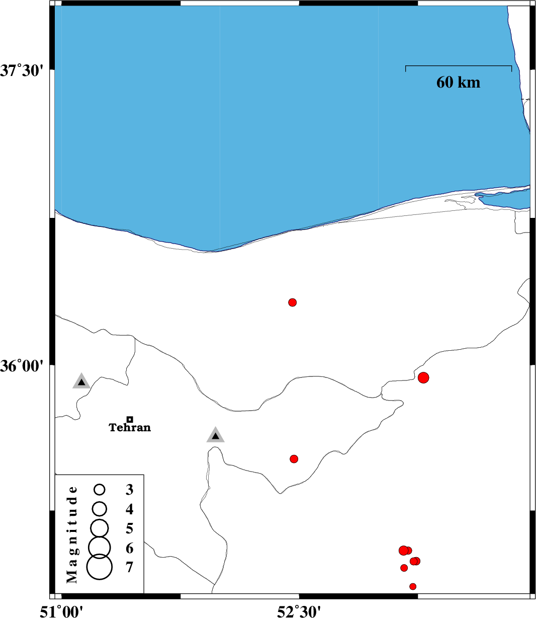 | 2015/09/30 | 04:14:39.3 | 07:44:39.3 | 34.987 | 53.222 | 14 | ML:2.1 | Semnan Province, 66 km South-West of Semnan | ||