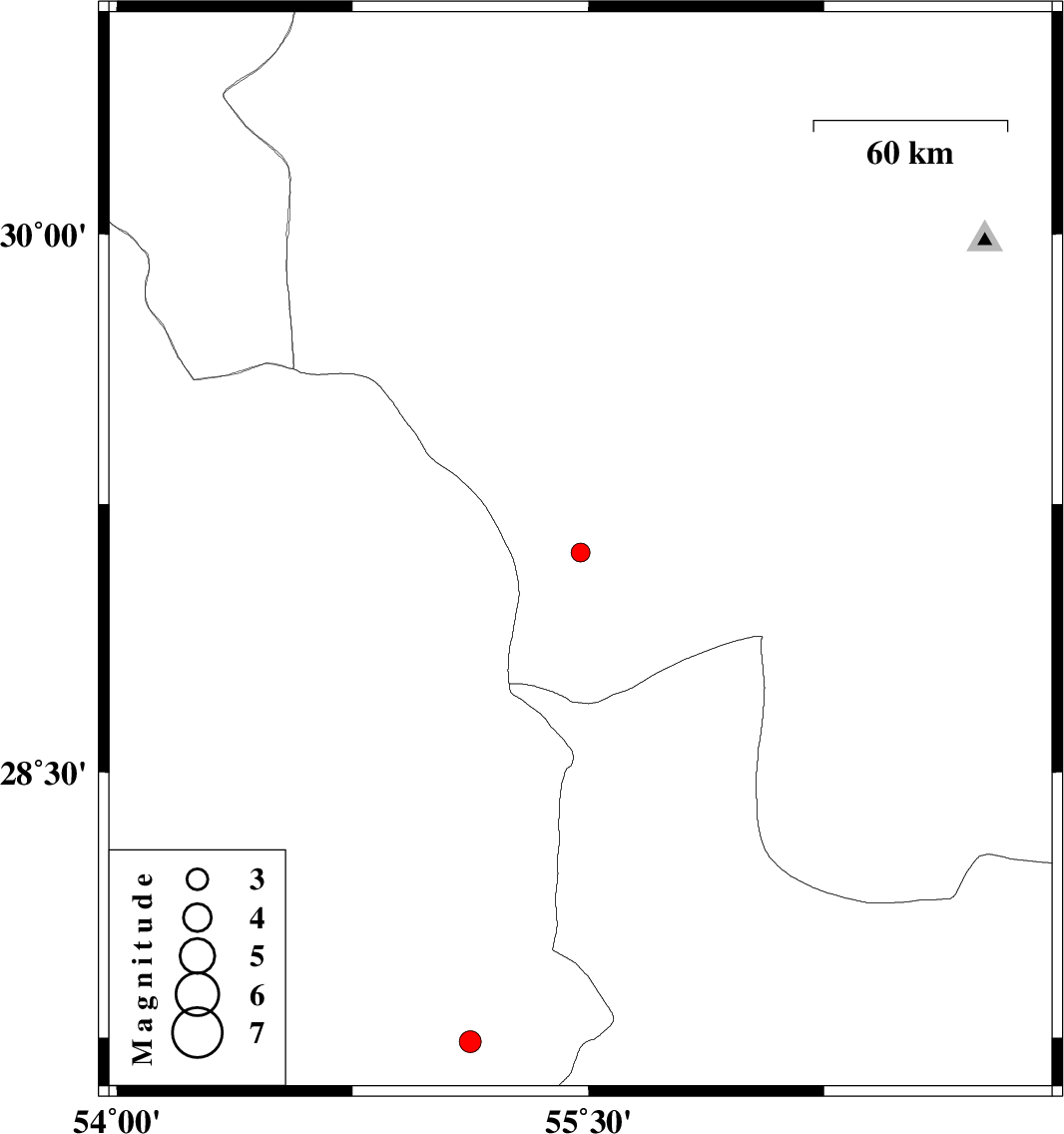 | 2015/09/29 | 14:20:02.9 | 17:50:02.9 | 27.74 | 55.125 | 18 | ML:3.1 | Fars Province, 78 km -East of Lar |