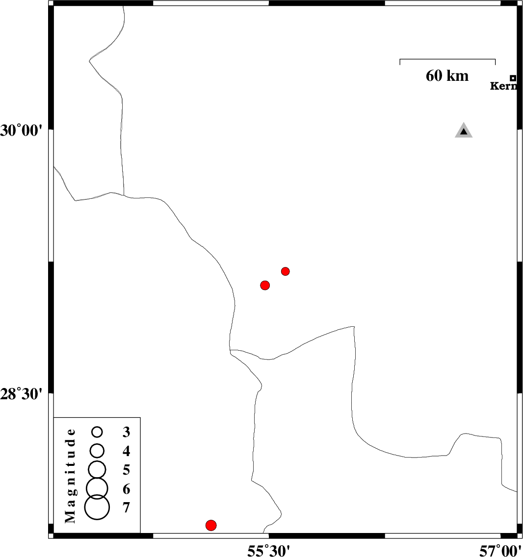 | 2015/10/03 | 10:30:11.5 | 14:00:11.5 | 29.195 | 55.606 | 18 | ML:2.4 | Kerman Province, 29 km South of Sirjan | ||