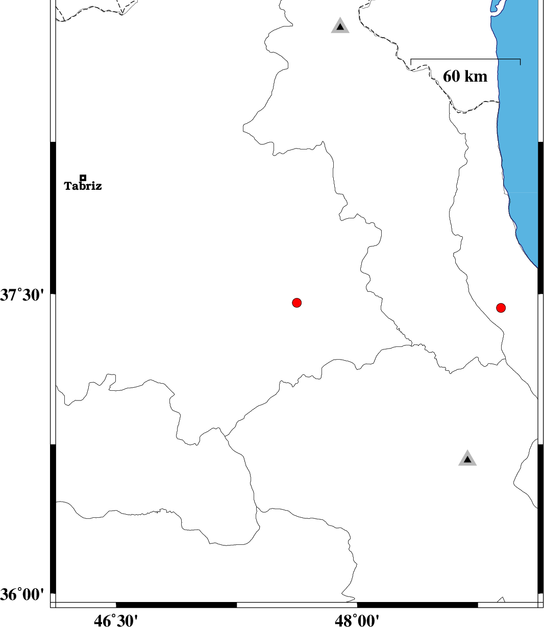 2015/10/04 | 13:08:32.3 | 16:38:32.3 | 37.455 | 47.623 | 14 | ML:2.6 | Azarbaijan Sharghi Province, 9 km of Mianeh | ||