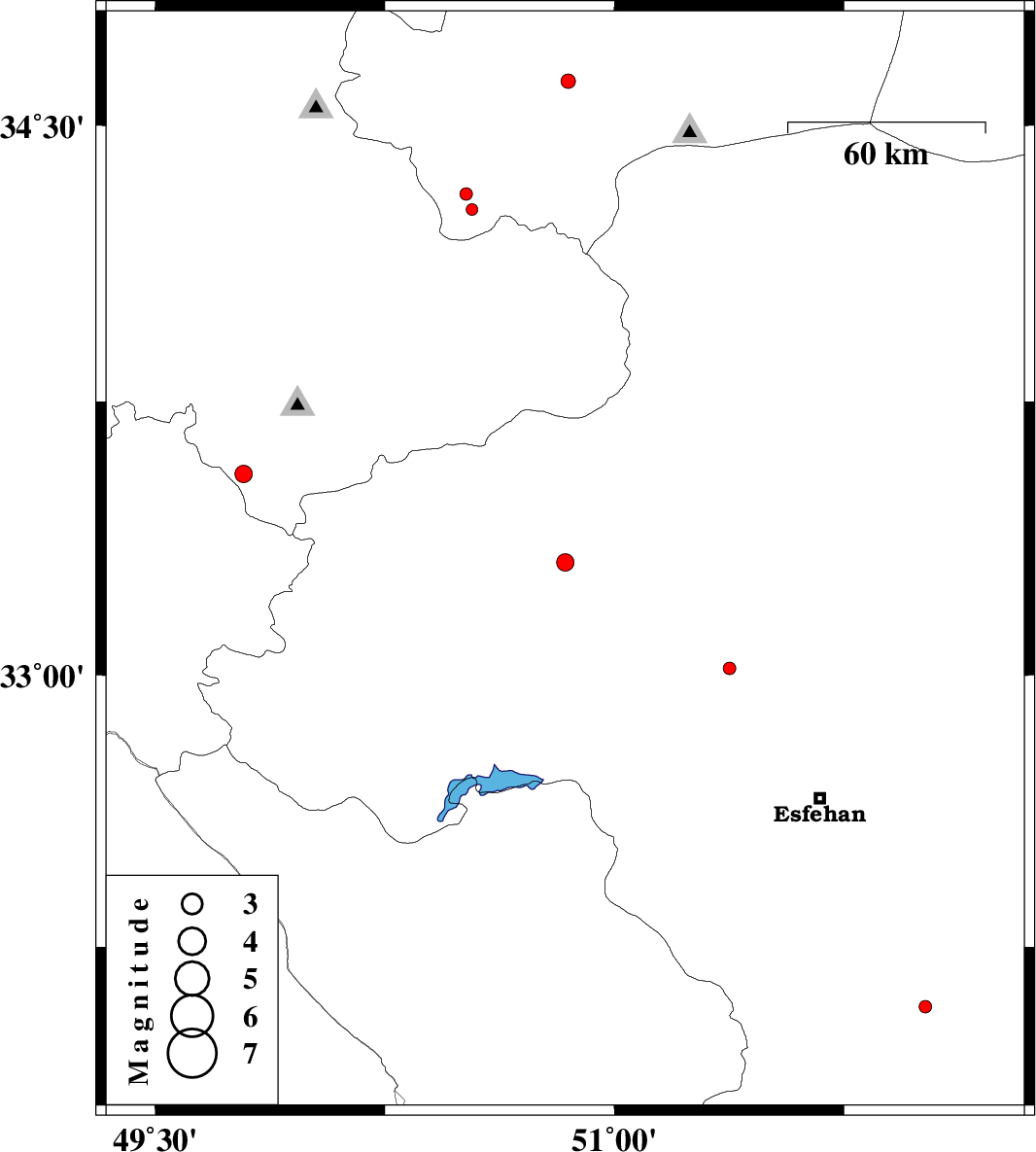 | 2015/10/02 | 09:04:58.0 | 12:34:58.0 | 32.084 | 52.016 | 14 | ML:1.9 | Esfahan Province, 16 km -East of Shahreza | ||