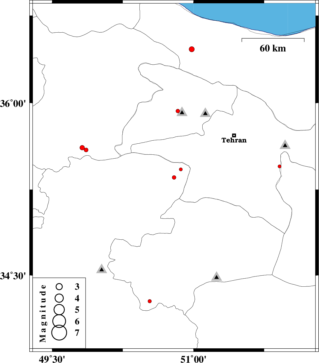 | 2015/10/04 | 20:22:49.4 | 23:52:49.4 | 35.931 | 50.834 | 6 | ML:1.9 | Tehran Province, 15 km -East of Hashtgerd | ||