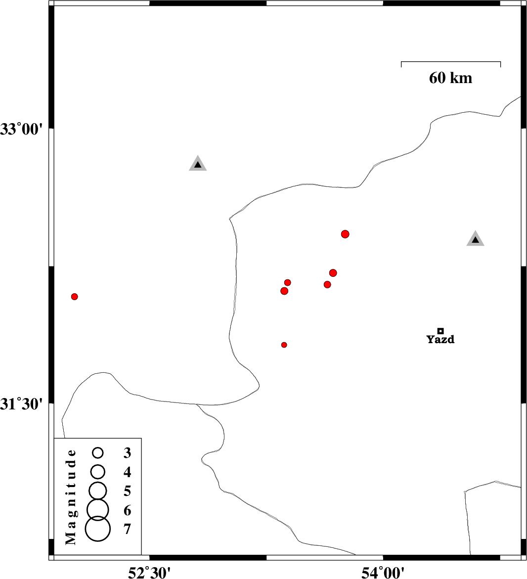 | 2015/10/06 | 11:40:41.4 | 15:10:41.4 | 32.426 | 53.755 | 6 | ML:2.2 | Yazd Province, 28 km North-West of Ardakan | ||