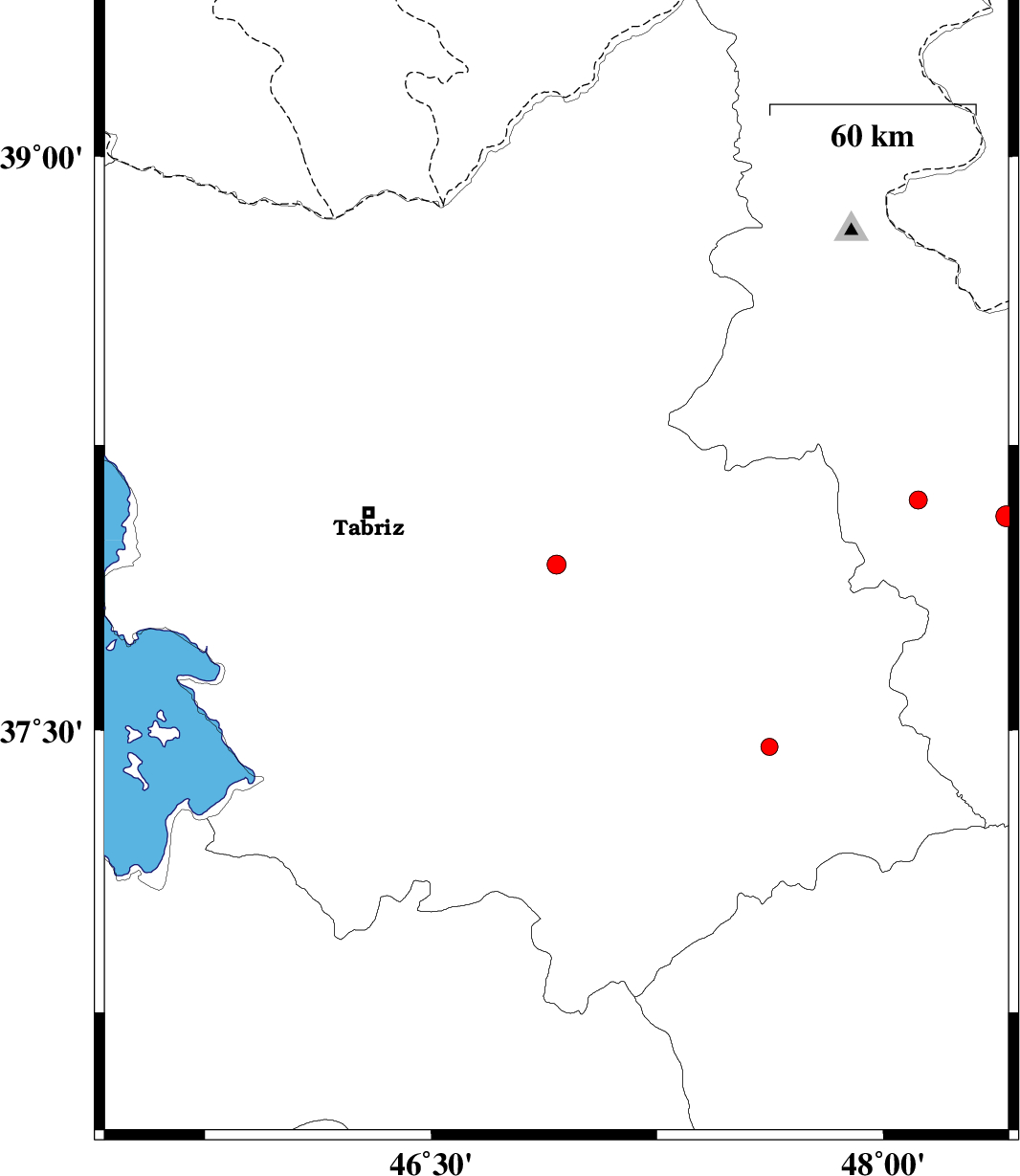 2015/09/17 | 01:15:38.3 | 05:45:38.3 | 38.106 | 48.116 | 20 | ML:2.7 | Ardebil Province, 4 km of Nir |