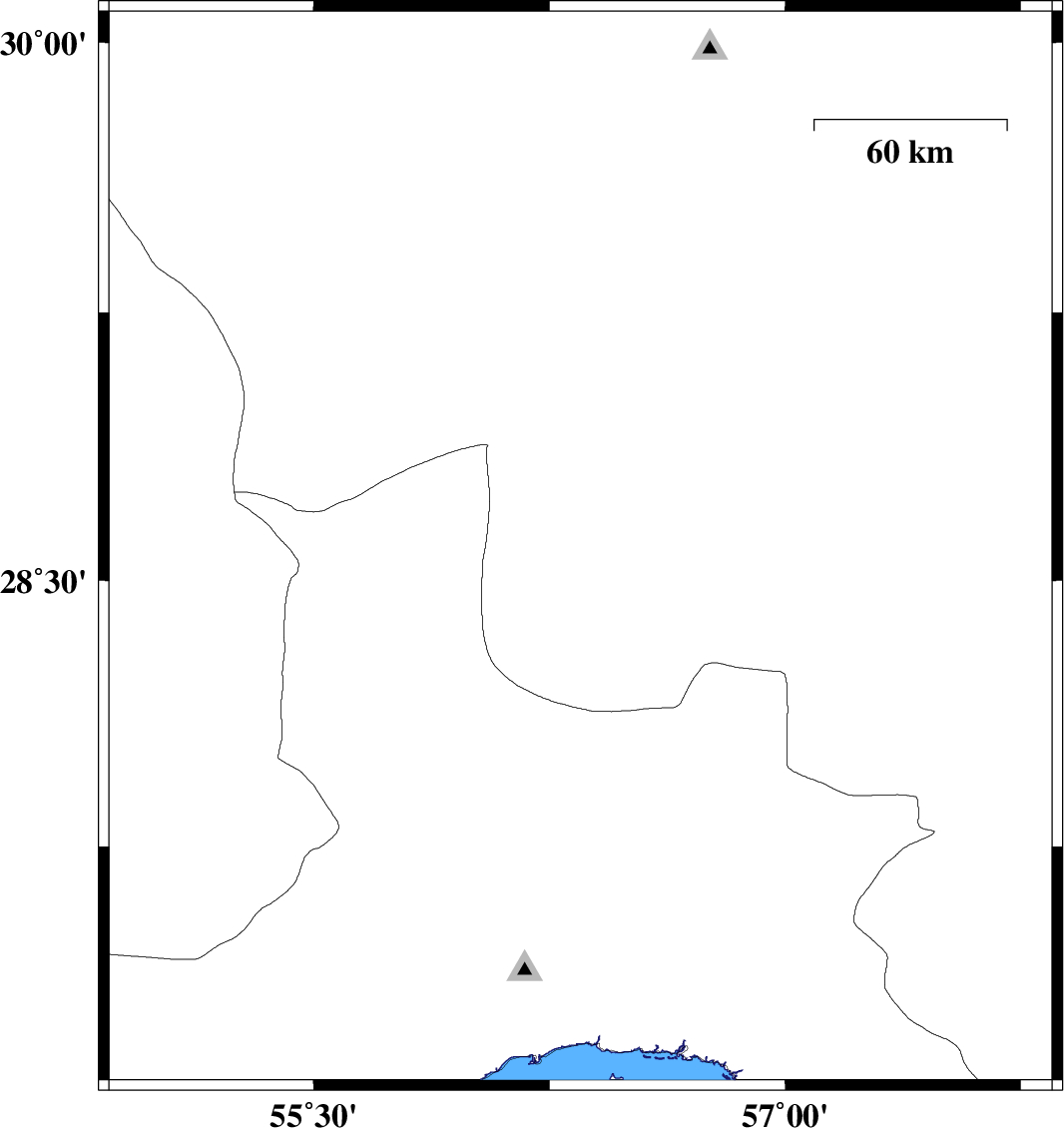 | 2015/10/16 | 06:06:51.6 | 09:36:51.6 | 28.593 | 56.294 | 15 | ML:2.5 | Kerman Province, 50 km North-East of Hajiabad | ||