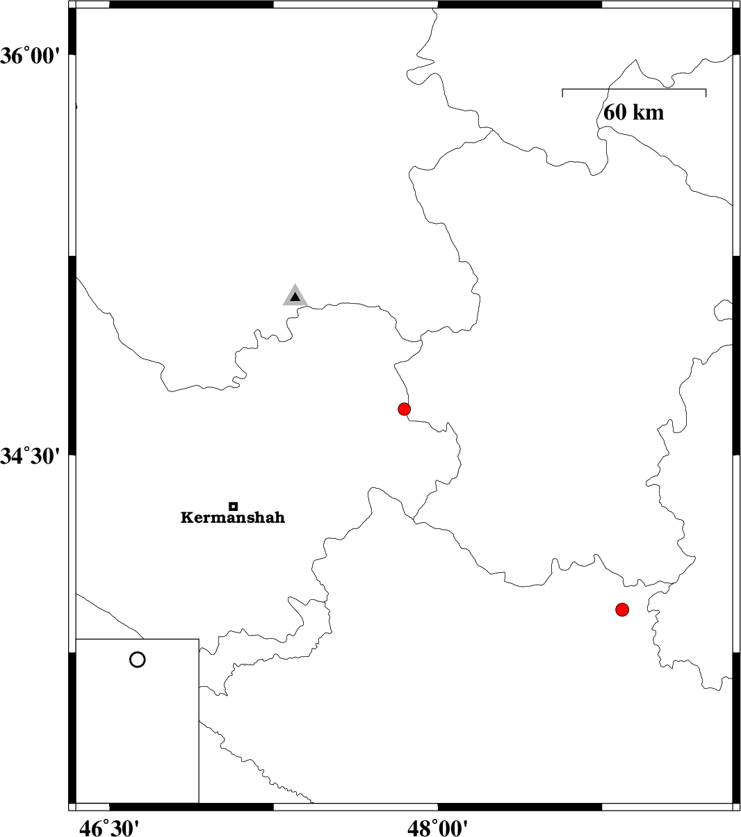 | 2015/10/28 | 00:42:25.4 | 04:12:25.4 | 34.673 | 47.846 | 14 | ML:2.6 | Kermanshah Province, 22 km North of Kangavar | ||