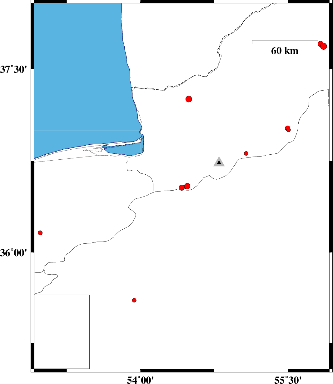 | Prel. Rep. | Date | Time(UTC) | Time(Local) | Lat. | Lon. | Depth | Mag. | Region | Waveform |