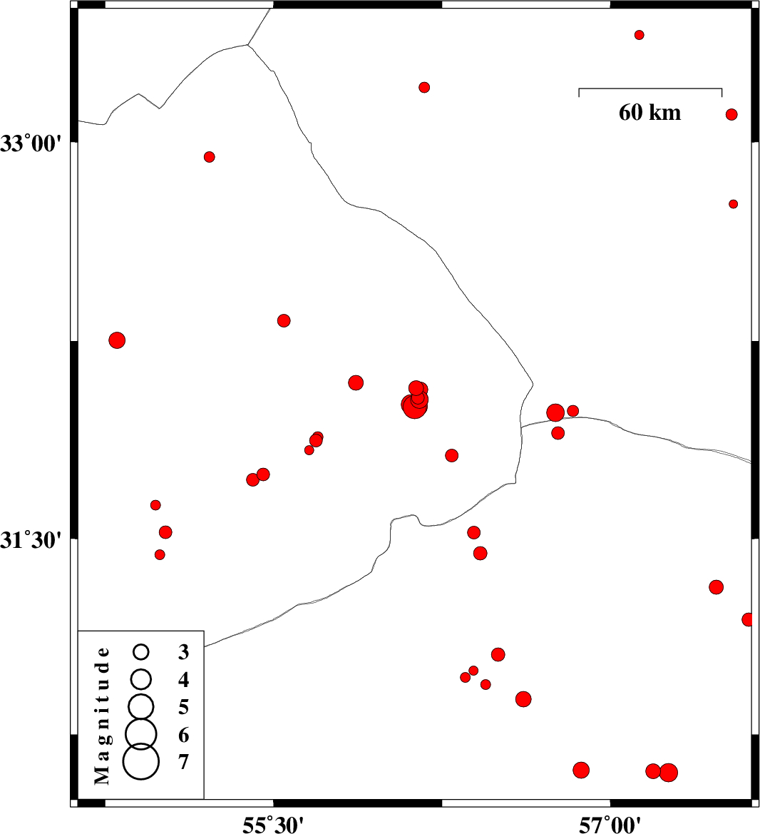 2015/10/09 06:55:55.9 10:25:55.9 30.60357.25914 ML:3.7 Kerman Province, 39 km North-East of Kerman