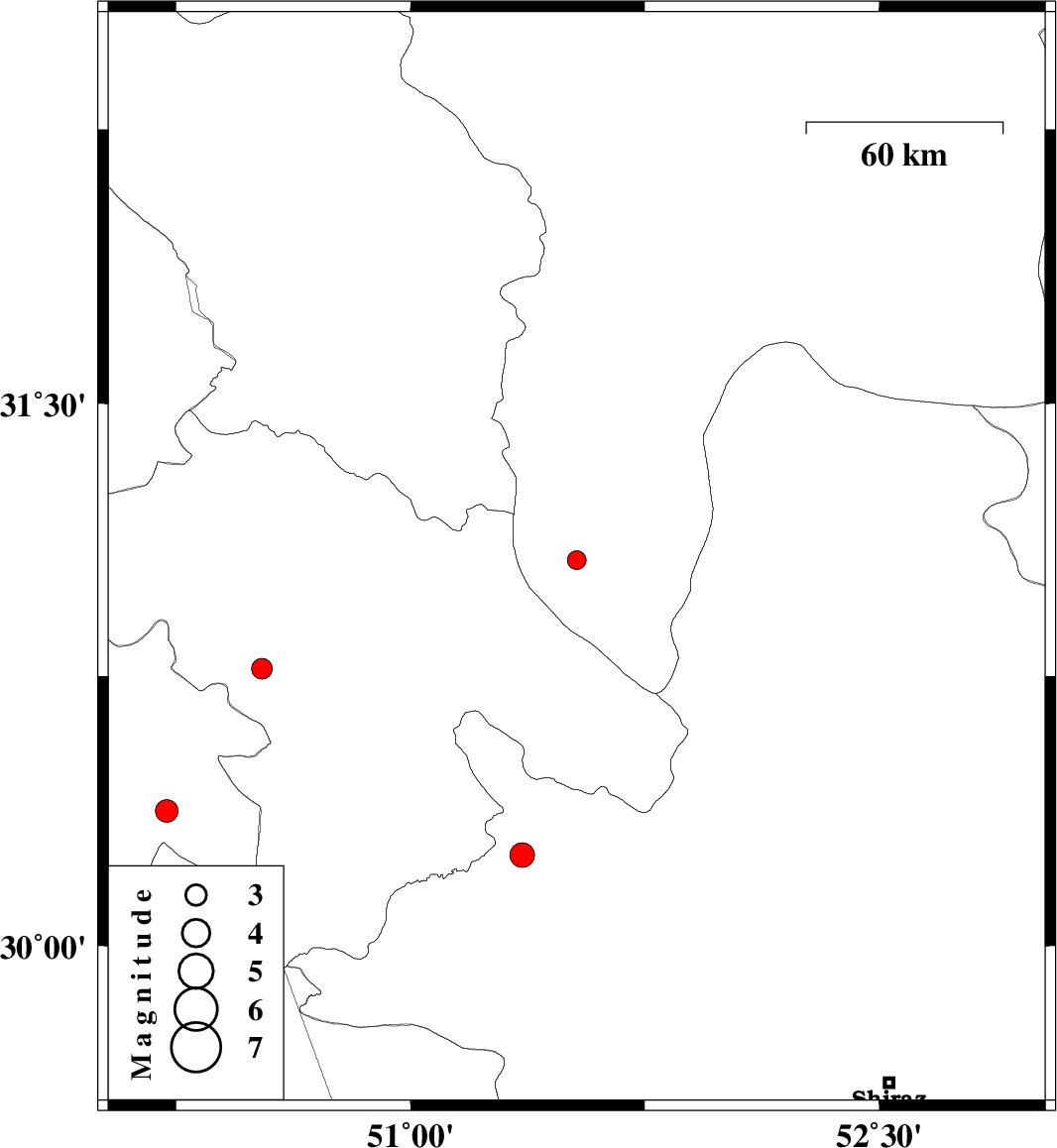 | 2015/11/03 | 03:53:36.1 | 07:23:36.1 | 30.376 | 50.22 | 15 | ML:3.3 | Khoozestan Province, 25 km South of Behbahan |