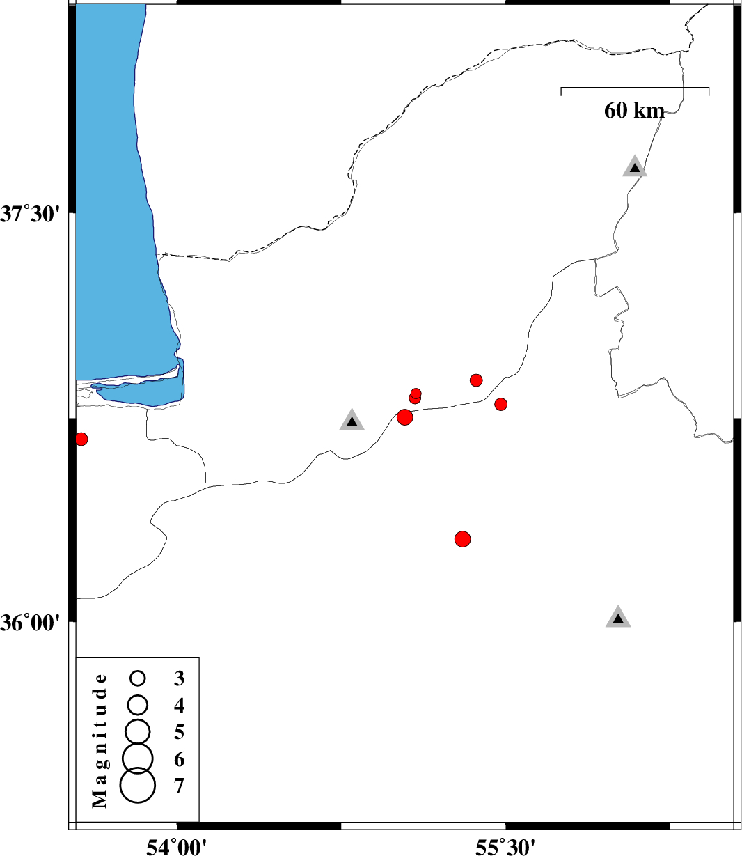 | 2015/11/07 | 15:37:51.7 | 19:07:51.7 | 36.889 | 55.366 | 8 | ML:2.5 | Golestan Province, 24 km South-East of Ramian |