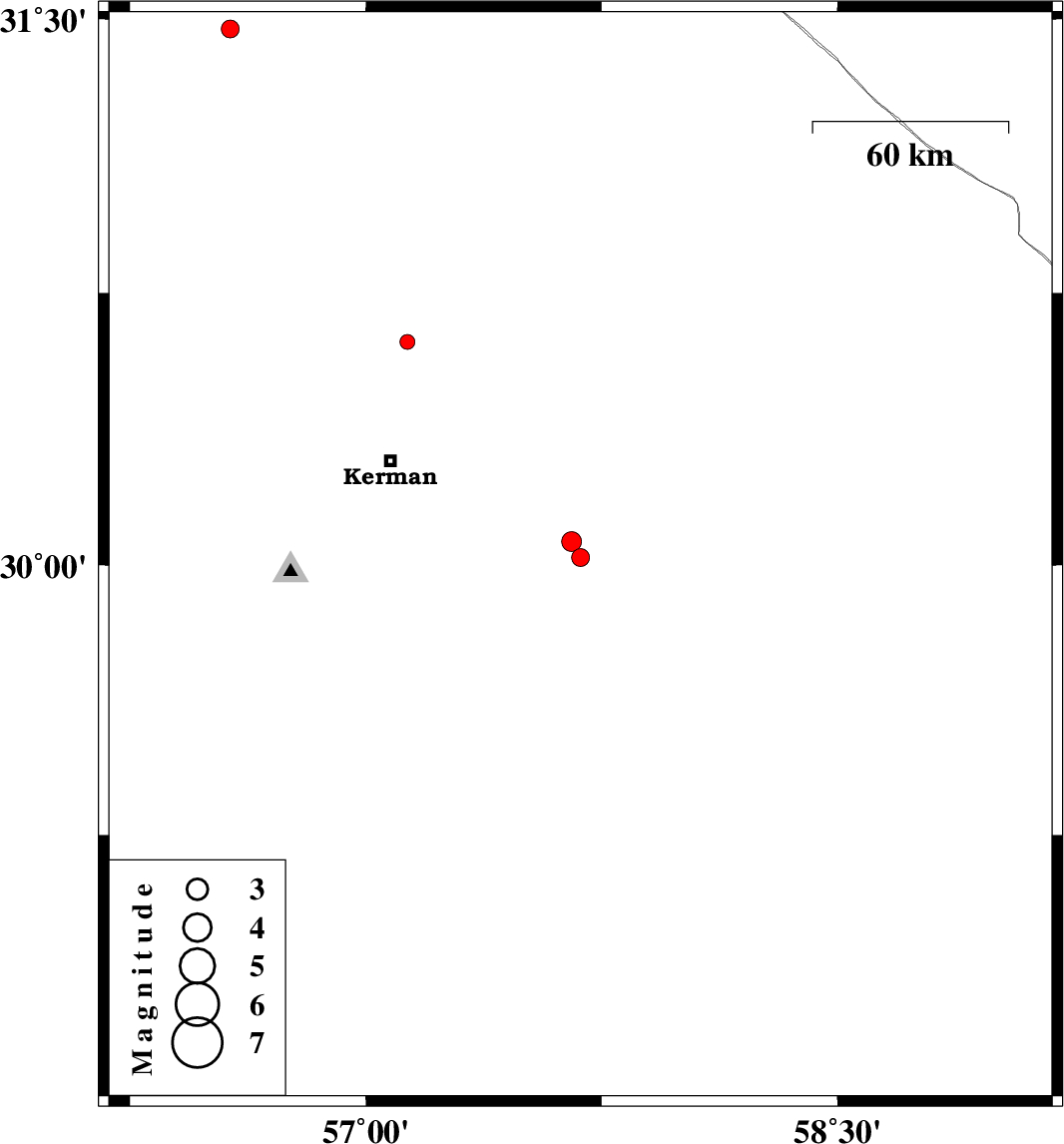 | 2015/11/12 | 08:24:42.0 | 11:54:42.0 | 30.615 | 57.132 | 18 | ML:2.1 | Kerman Province, 37 km North of Kerman | ||