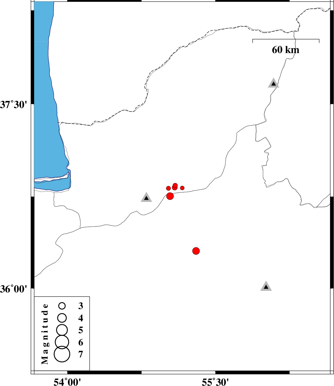 | 2015/11/10 | 01:08:08.9 | 04:38:08.9 | 36.824 | 55.087 | 7 | ML:2.4 | Golestan Province, 22 km South of Ramian |