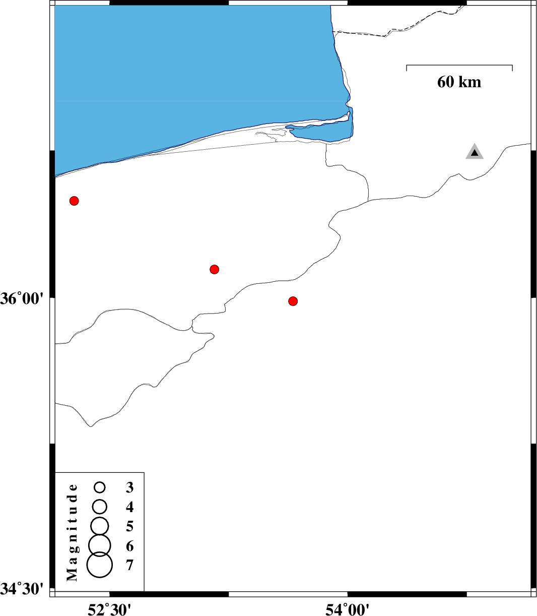 | 2015/11/18 | 00:02:20.6 | 03:32:20.6 | 36.494 | 52.276 | 14 | ML:2.5 | Mazandaran Province, 7 km of Amol |