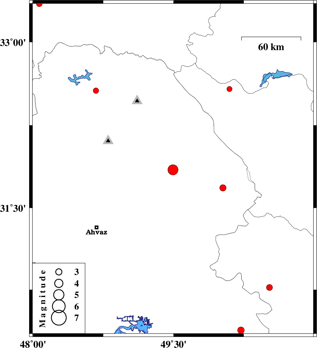 | 2015/11/03 | 03:53:36.1 | 07:23:36.1 | 30.376 | 50.22 | 15 | ML:3.3 | Khoozestan Province, 25 km South of Behbahan | ||
