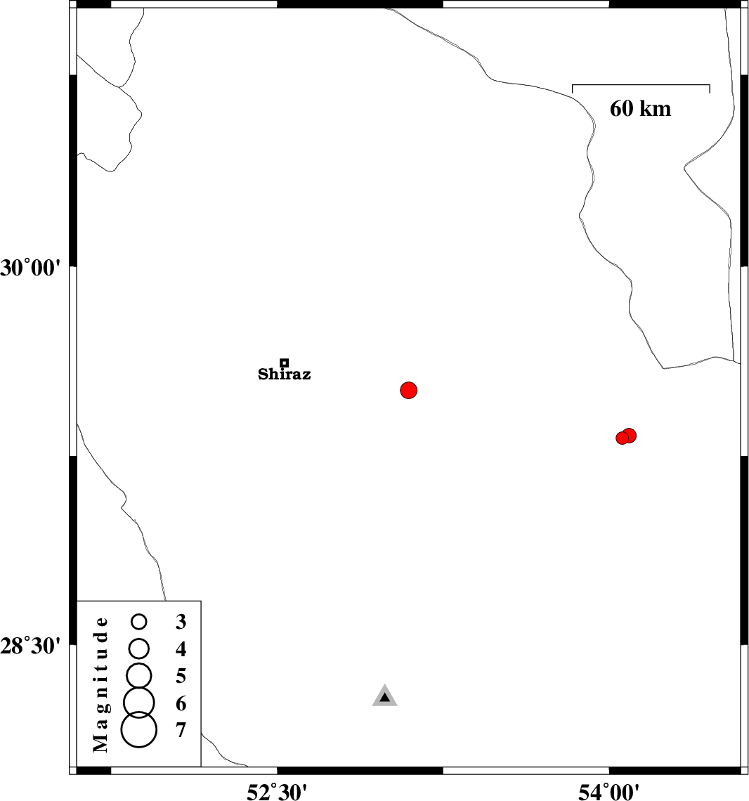 | 2015/12/16 | 07:07:57.4 | 10:37:57.4 | 29.331 | 54.09 | 14 | ML:2.9 | Fars Province, 23 km North of Estahban |