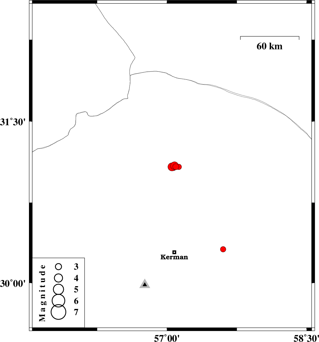 | 2015/12/28 | 13:22:36.8 | 16:52:36.8 | 30.315 | 57.602 | 14 | ML:2.7 | Kerman Province, 50 km -East of Kerman | ||