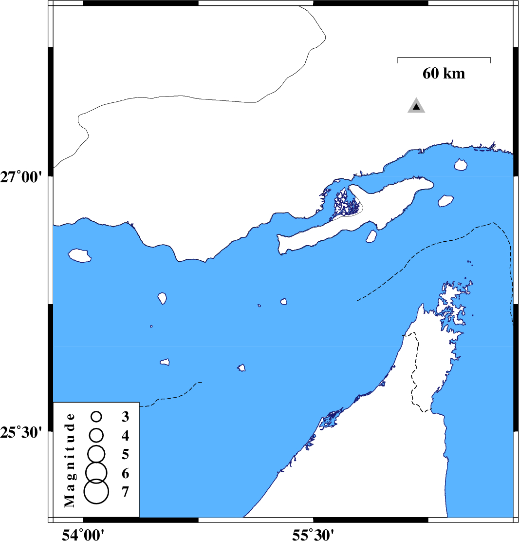 | 2016/01/01 | 23:17:30.3 | 02:47:30.3 | 26.491 | 55.303 | 15 | ML:3.3 | Persian Gulf, 45 km -East of Bandar-e lengeh |