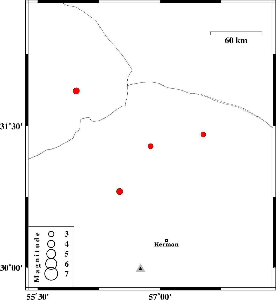 2016/02/11 | 00:43:22.4 | 04:13:22.4 | 30.807 | 56.505 | 14 | ML:3.5 | Kerman Province, 6 km of Zarand | ||