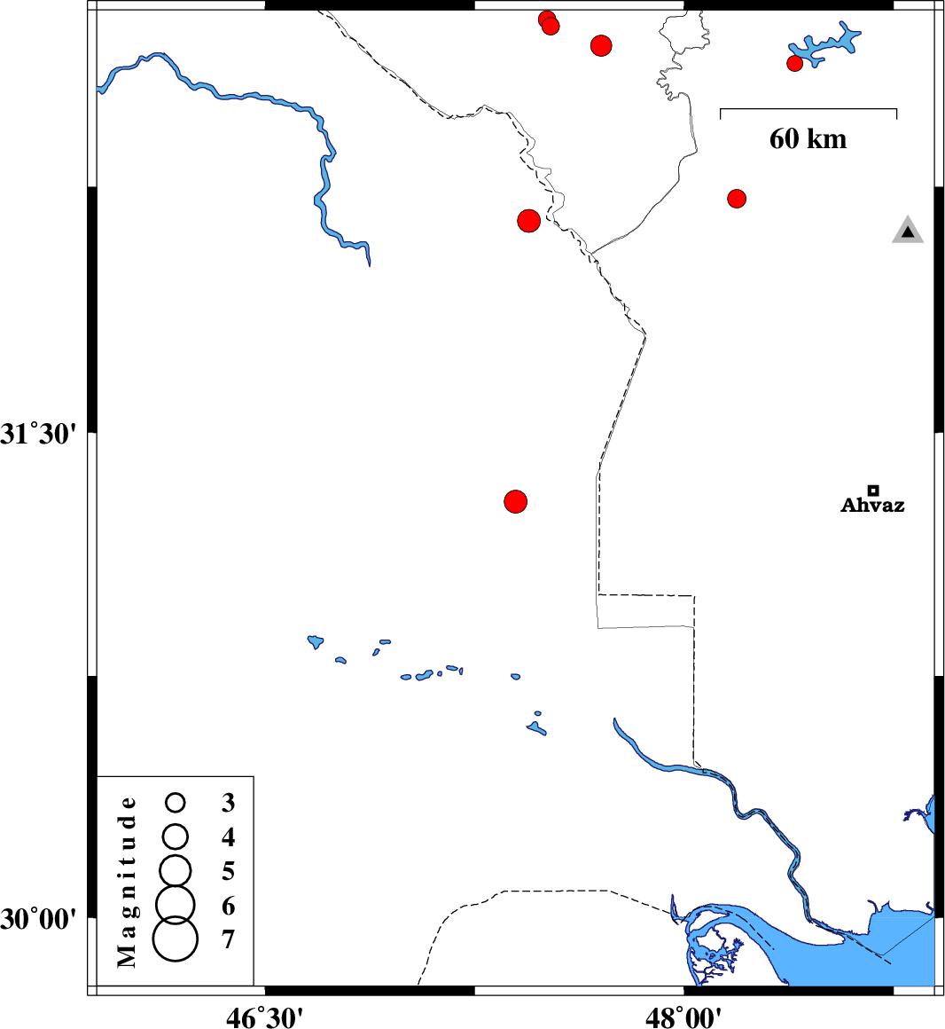 | 2016/02/11 | 03:14:43.6 | 06:44:43.6 | 31.287 | 47.396 | 15 | ML:3.6 | Iraq, 81 km South-West of Susangerd | ||