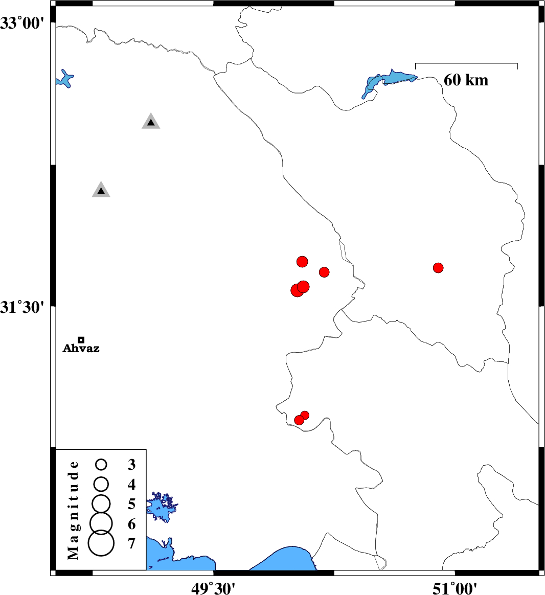 | 2016/01/27 | 02:54:33.2 | 06:24:33.2 | 30.892 | 50.033 | 15 | ML:2.7 | Kohkiluieh va boyerahmad Province, 34 km North-East of Omidiyeh | ||