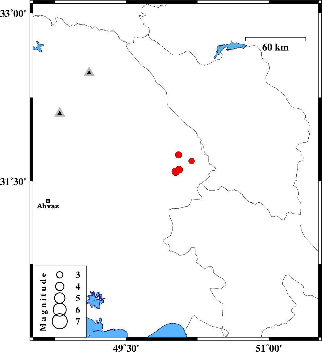 | 2016/02/19 | 07:29:02.2 | 10:59:02.2 | 31.737 | 50.051 | 15 | ML:3.1 | Khoozestan Province, 20 km -East of Izeh |