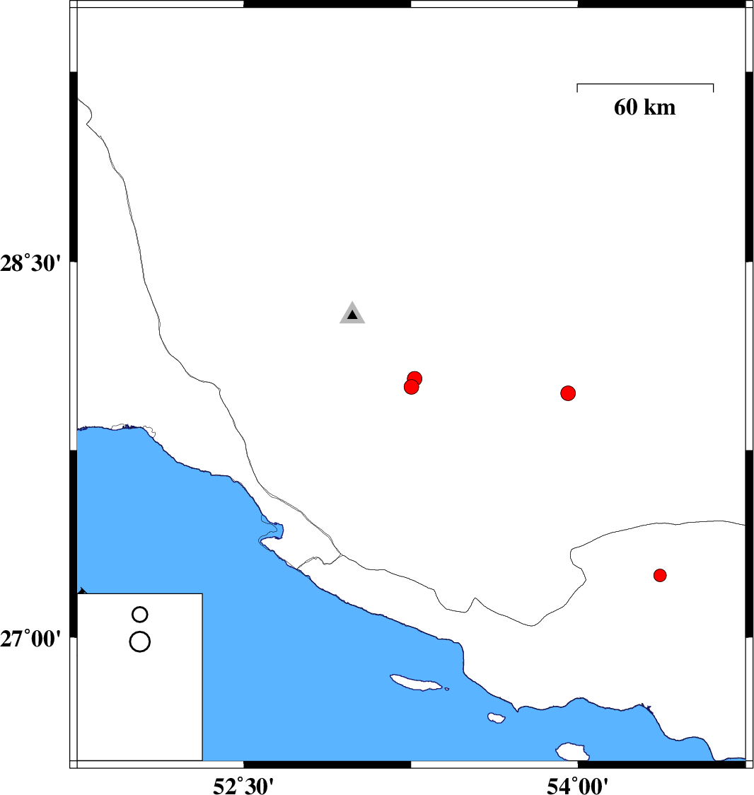 | 2016/02/23 | 05:26:40.7 | 08:56:40.7 | 28.003 | 53.252 | 14 | ML:2.9 | Fars Province, 56 km South-East of Qir va Karzin | ||