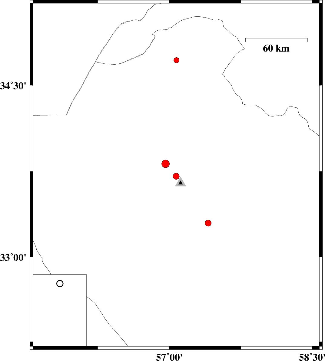 2016/02/10 | 22:24:02.2 | 01:54:02.2 | 33.297 | 57.407 | 15 | ML:2.9 | Yazd Province, 56 km South-East of Tabas |