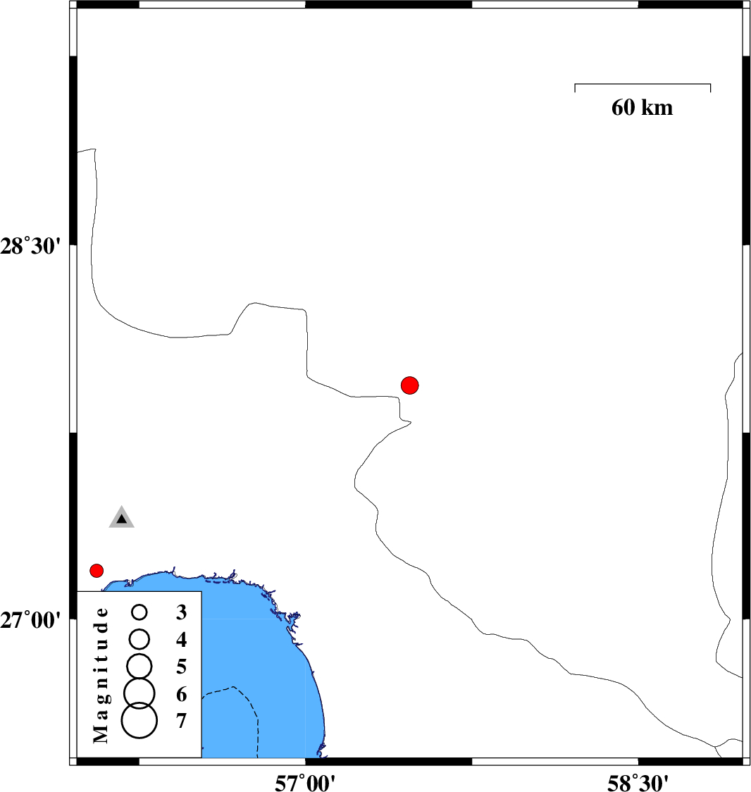| 2016/02/24 | 22:32:18.6 | 02:02:18.6 | 27.196 | 56.058 | 15 | ML:2.7 | Hormozgan Province, 22 km -West of Bandar-e abbas |