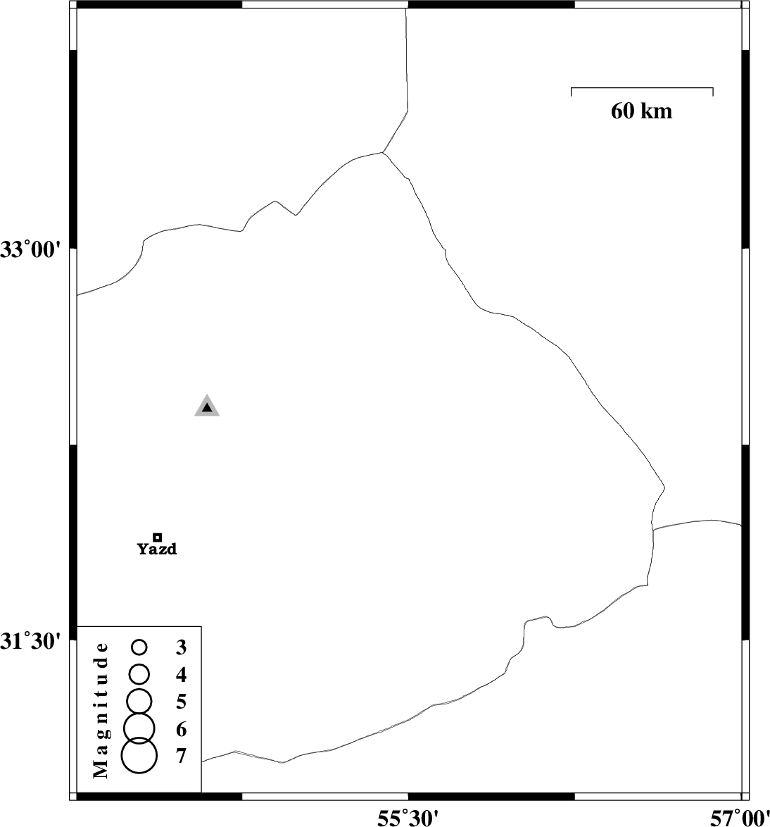 | 2016/03/14 | 06:52:16.0 | 10:22:16.0 | 32.408 | 55.504 | 14 | ML:3.2 | Yazd Province, 90 km North-East of Bafq |