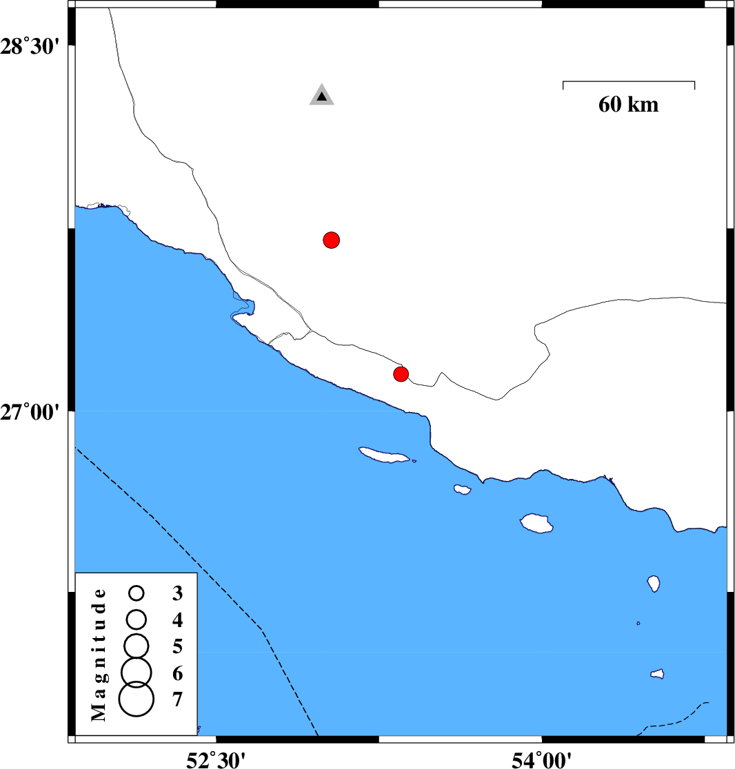 | 2016/03/28 | 19:28:28.9 | 23:58:28.9 | 27.703 | 53.03 | 14 | ML:3.4 | Fars Province, 22 km North-East of Mehr |
