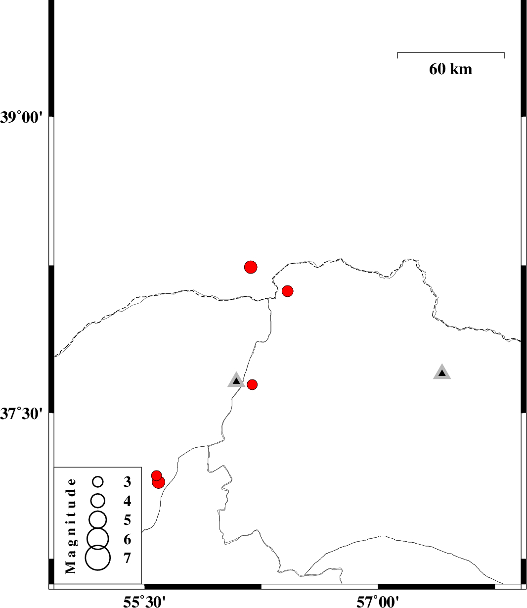 2016/03/13 | 19:49:22.6 | 23:19:22.6 | 37.644 | 56.191 | 6 | ML:2.9 | Khorasan(north) Province, 67 km -West of Ashkhaneh | ||