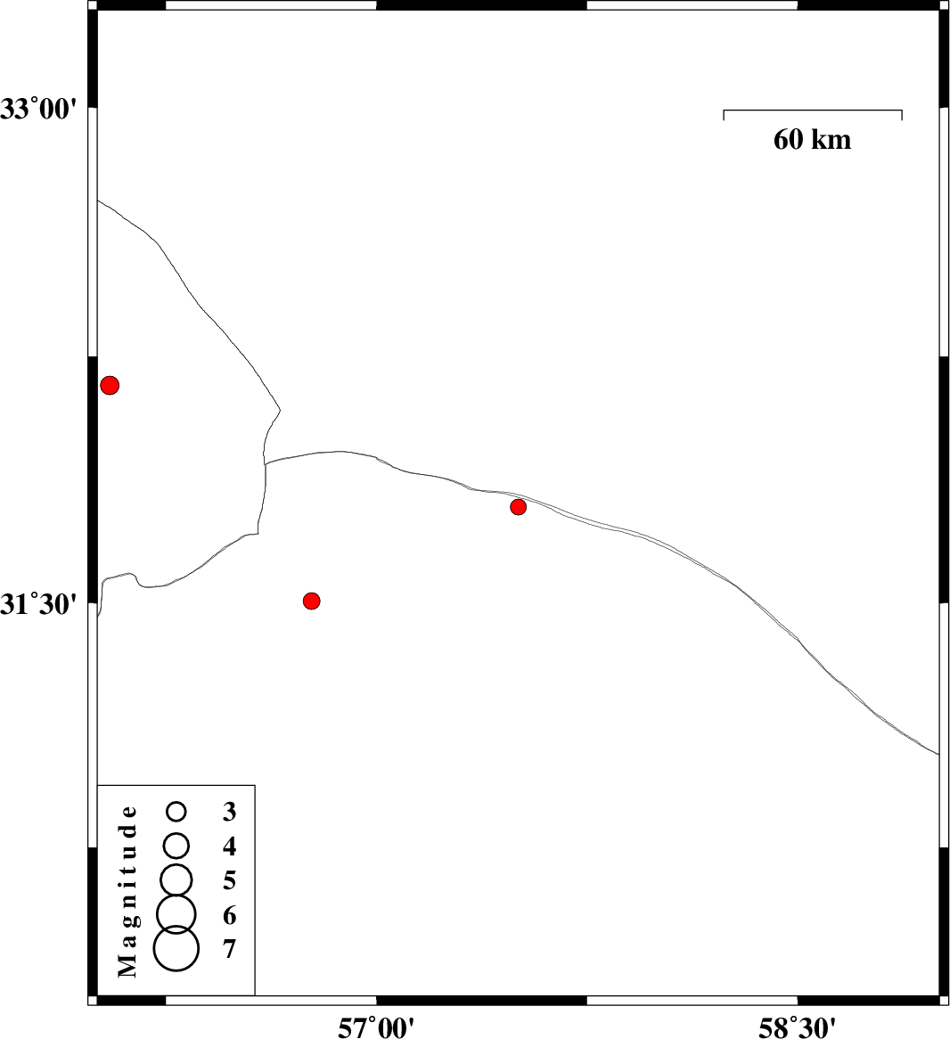| 2016/03/28 | 08:30:14.0 | 13:00:14.0 | 31.793 | 57.505 | 14 | ML:2.6 | Kerman Province, 88 km North-East of Ravar | ||