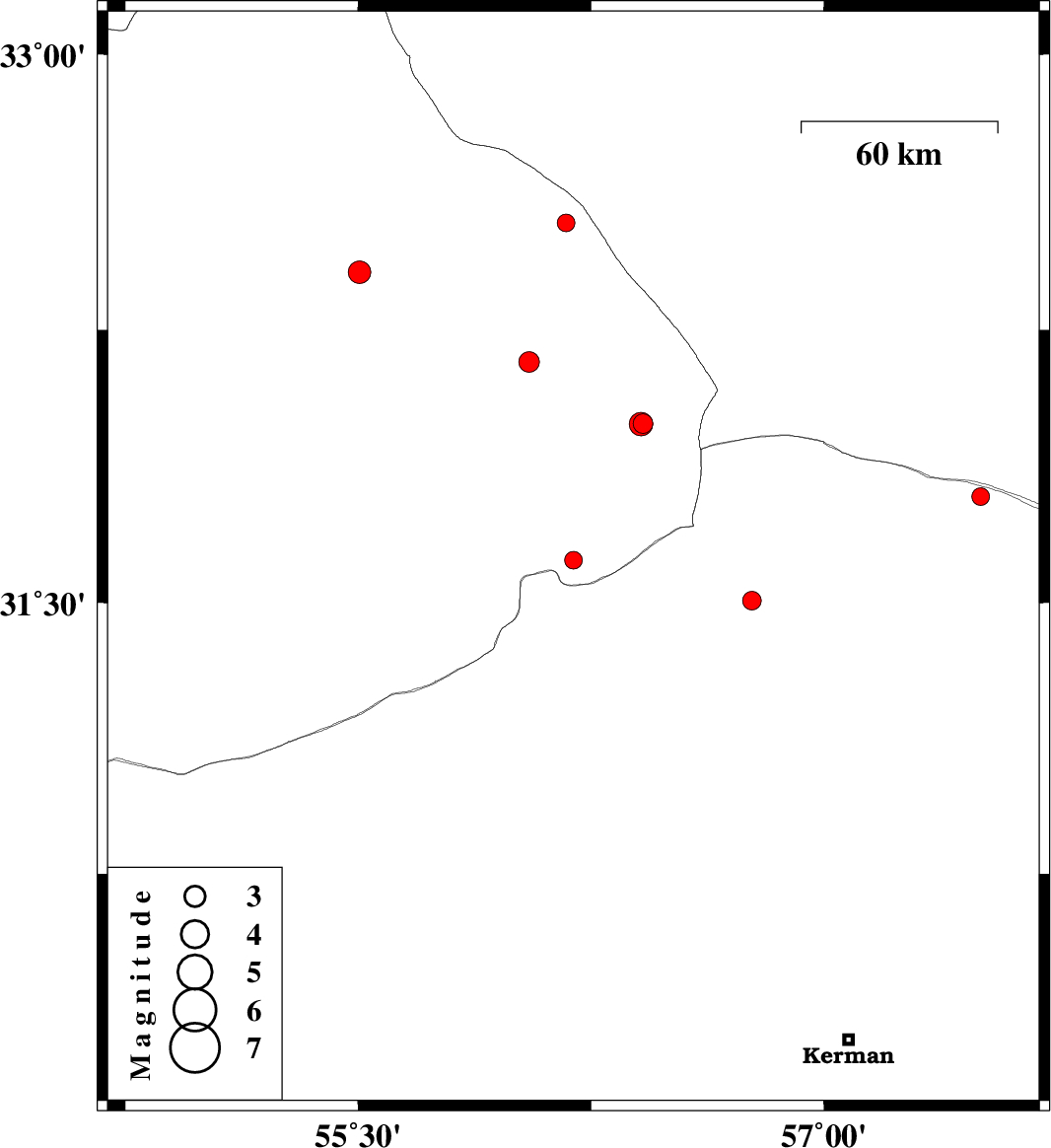 | 2016/03/28 | 08:30:14.0 | 13:00:14.0 | 31.793 | 57.505 | 14 | ML:2.6 | Kerman Province, 88 km North-East of Ravar | ||