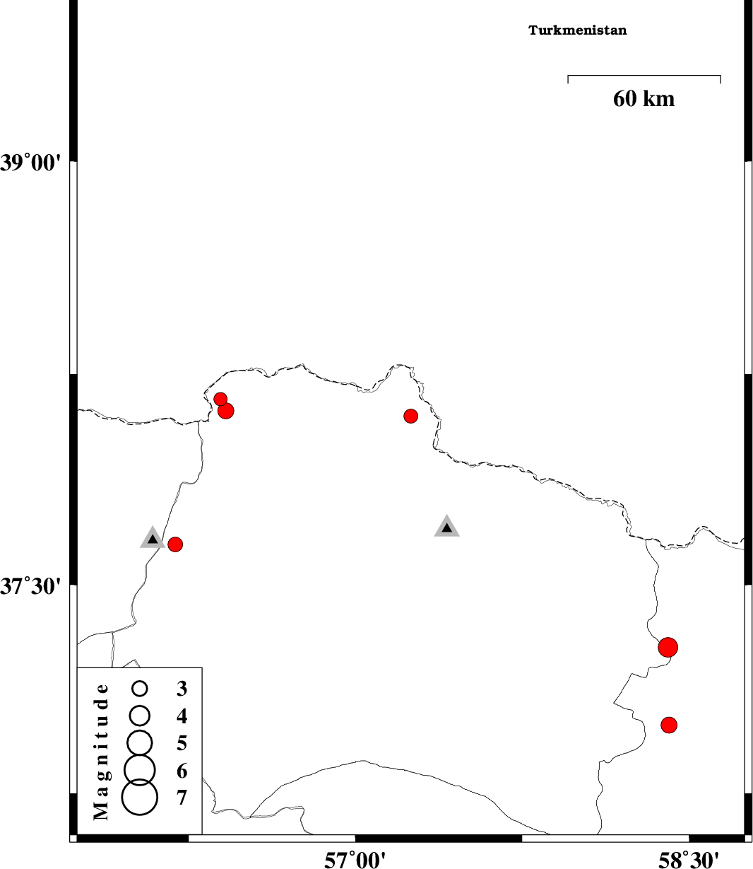 2016/03/14 | 17:26:49.2 | 20:56:49.2 | 37.276 | 58.405 | 14 | ML:3.9 | Khorasan(center) Province, 21 km North-West of Quchan | ||